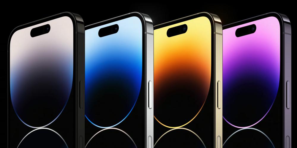 2022 年的 iPhone 14 Pro 系列带来了居中长条形挖孔屏幕和灵动岛动画。