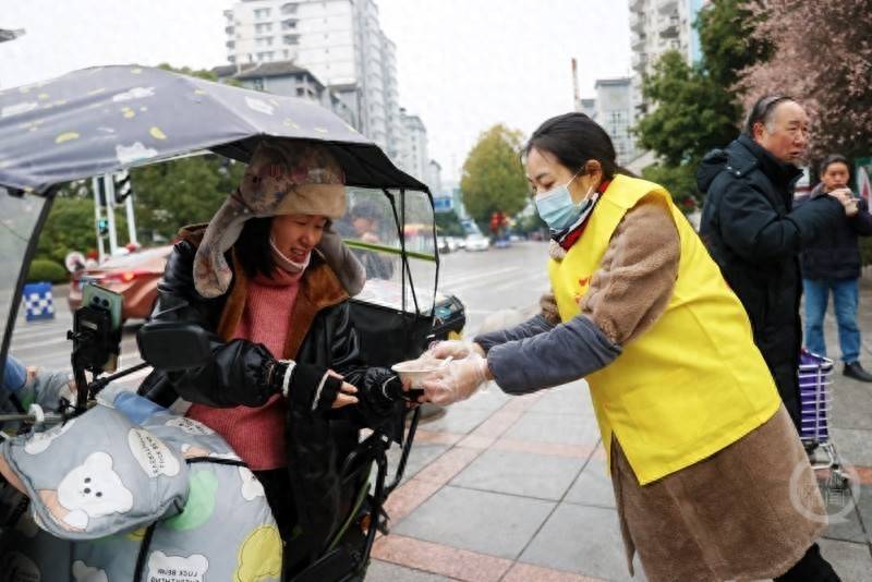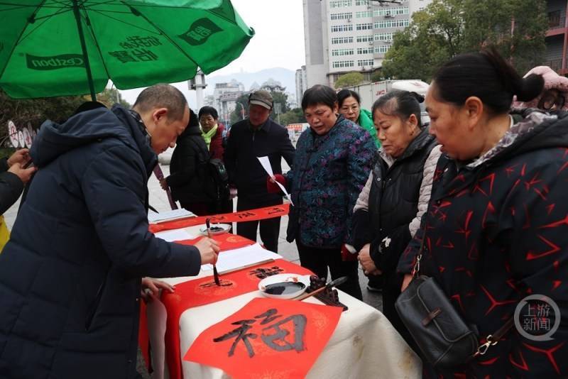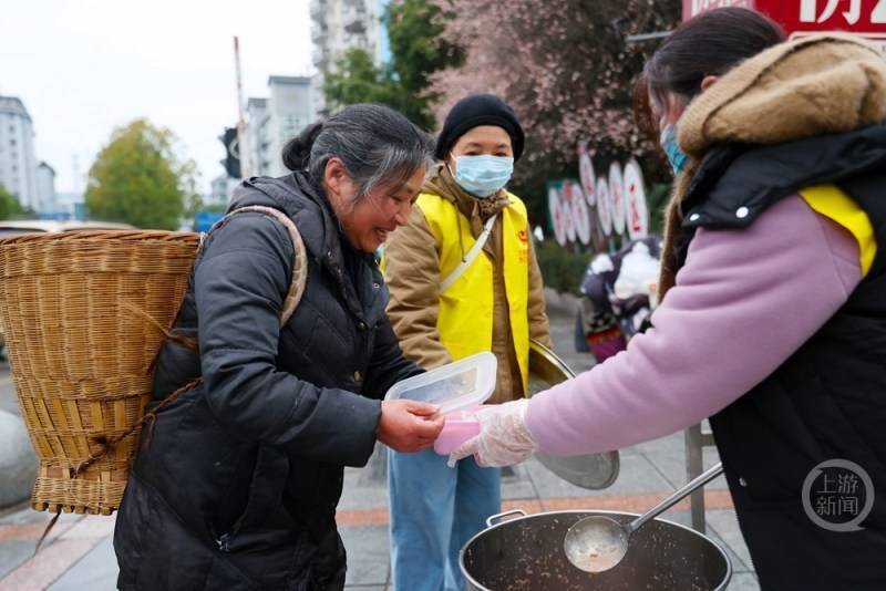 1月26日,重庆市黔江区武陵文化广场,志愿者在为市民免费派发繁荣昌盛的腊八粥。在腊八节本日,黔江区通过开展吃腊八粥、书写对子等手脚,共同感受传统文化,道喜纳祥。