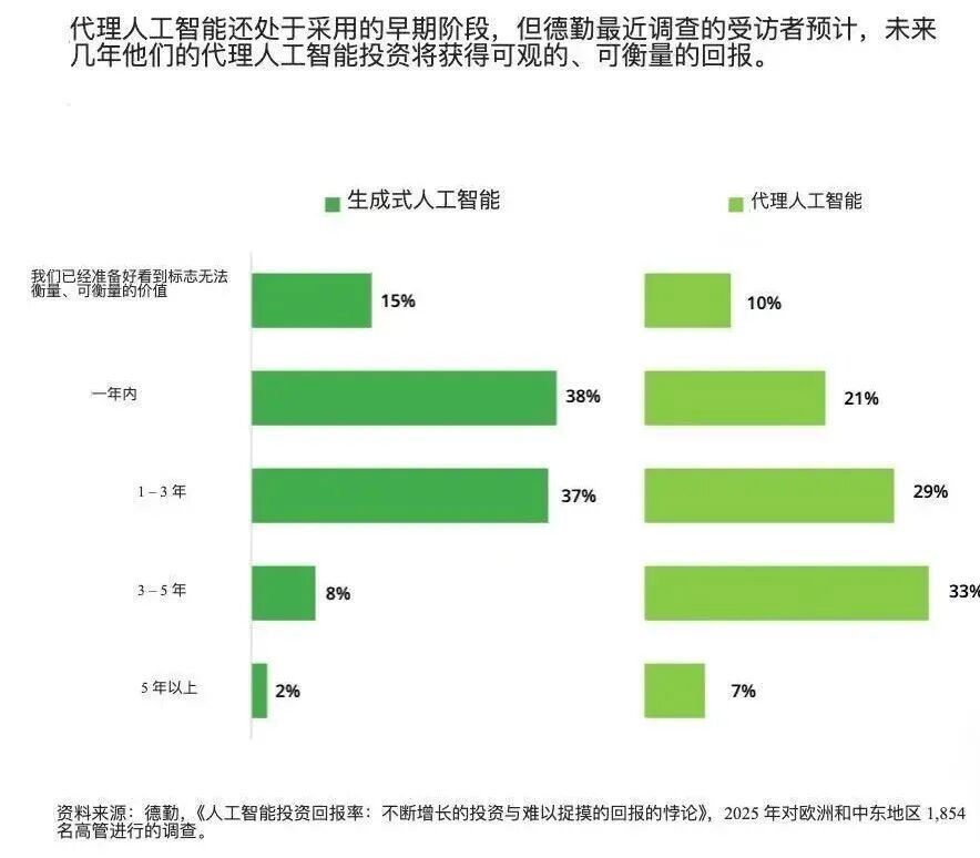 德勤在调研企业AI落地时也指出这一「剖释墙」:85%企业狡计定制Agent,但只好25%的试点姿首真实上线到坐蓐举止。同期,超三成企业以为,在3-5年内企业应用Agent才能获取可不雅的申诉,这意味着企业Agent还在早期。