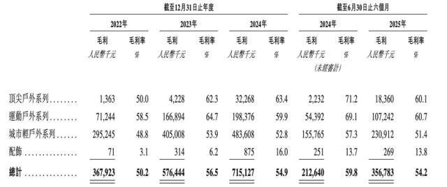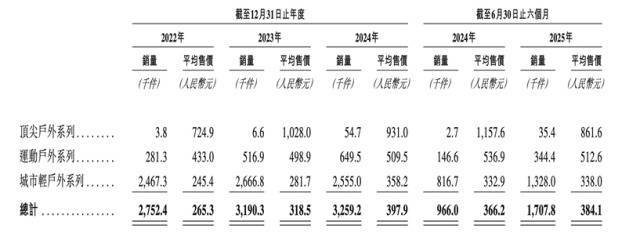把柄招股书,其顶尖户外系列平均售价在2023年达到顶峰1028元后,就呈下滑趋势,在2025年上半年平均售价仅为861.6元,价钱同比下滑25.6%。