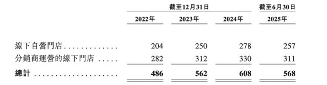在线上,2022年到2024年其收入从2.26亿高潮至6.26亿,孝敬占比从30.9%高潮到48.1%,在2025年上半年,孝敬收入3.47亿元,占比52.7%,如故卓绝一半。而线下门店,则已有减弱迹象,2024年其门店数为278家,2025年上半年缩减至257家。