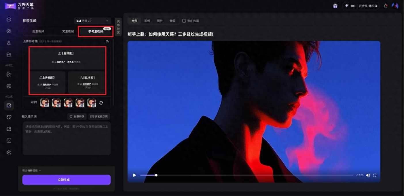 (万兴天幕创作广场重磅上新“参考生视频”功能)