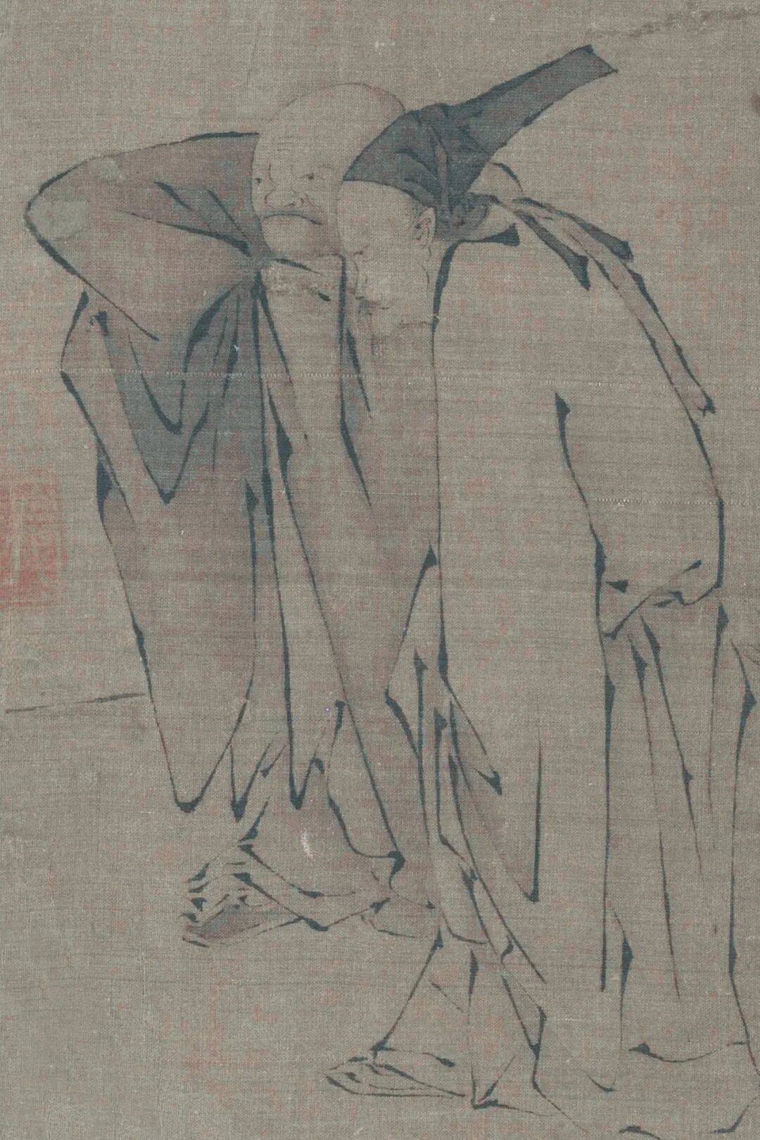 画中松树倒挂如龙,藤蔓缠绕似禅机,三高士的姿态更笼罩奥妙:僧东谈主支遁形容简古,与《泼墨仙东谈主图》的醉意遥呼相应;儒者王羲之躬身颔首,似在倾听松风;羽士许迈拱手前行,衣袂翻飞如鹤唳。这种“一角式”构图,将南宋文东谈主“隐于市”的精神逆境滚动为视觉隐喻——他们游赏于松崖,实则游心于物外,以减笔之“简”对抗平凡之“繁”。